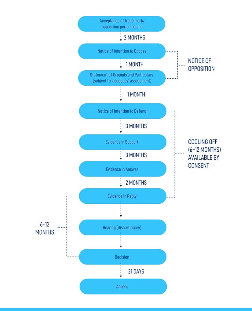 A diagram of the timeline and stages of opposition proceedings is provided in the diagram below.